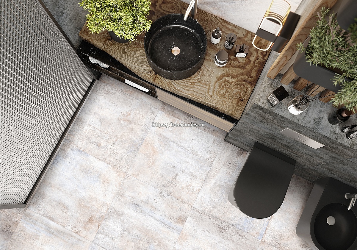Особенная серия Oxide представлена светло-серым бетоном, бирюзово-коричневым оксидом и плиткой с геометрической нарезкой фактуры в виде шеврона. Для создания текстуры оксидированного металла в нашей лаборатории использовались фрагменты промышленных металлических плит, графику которых можно перенести на поверхность плитки и создать яркие многоцветные градиенты. Керамогранитный плитка в тон с темной плиткой дополняет коллекцию и обладает безопасной и практичной рельефной фактурой с блестящим эффектом deep-ink.