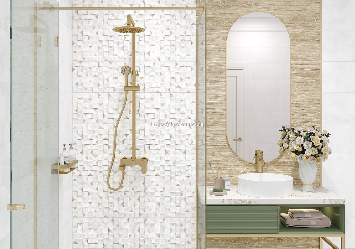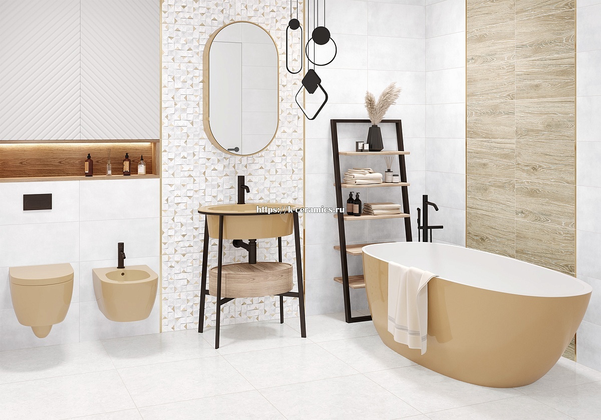Islandia - это современная коллекция плитки, которая идеально подойдет для скандинавского, минималистичного, хай-тека или лофта интерьера. Матовая светлая текстура бетона в холодных тонах является основным элементом коллекции. Мозаичный рельеф и плитки с миксом текстур дерева и треугольников из бетона дополняют друг друга. Эти элементы могут быть использованы самостоятельно или в сочетании с деревянными плитками, которые имеют реалистичную фактуру. Коллекция выпускается в формате 249x500 мм и комплектуется керамическим бордюром золотого цвета размером 13x500 мм и керамогранитом лаппатированного типа размером 600x600 мм.