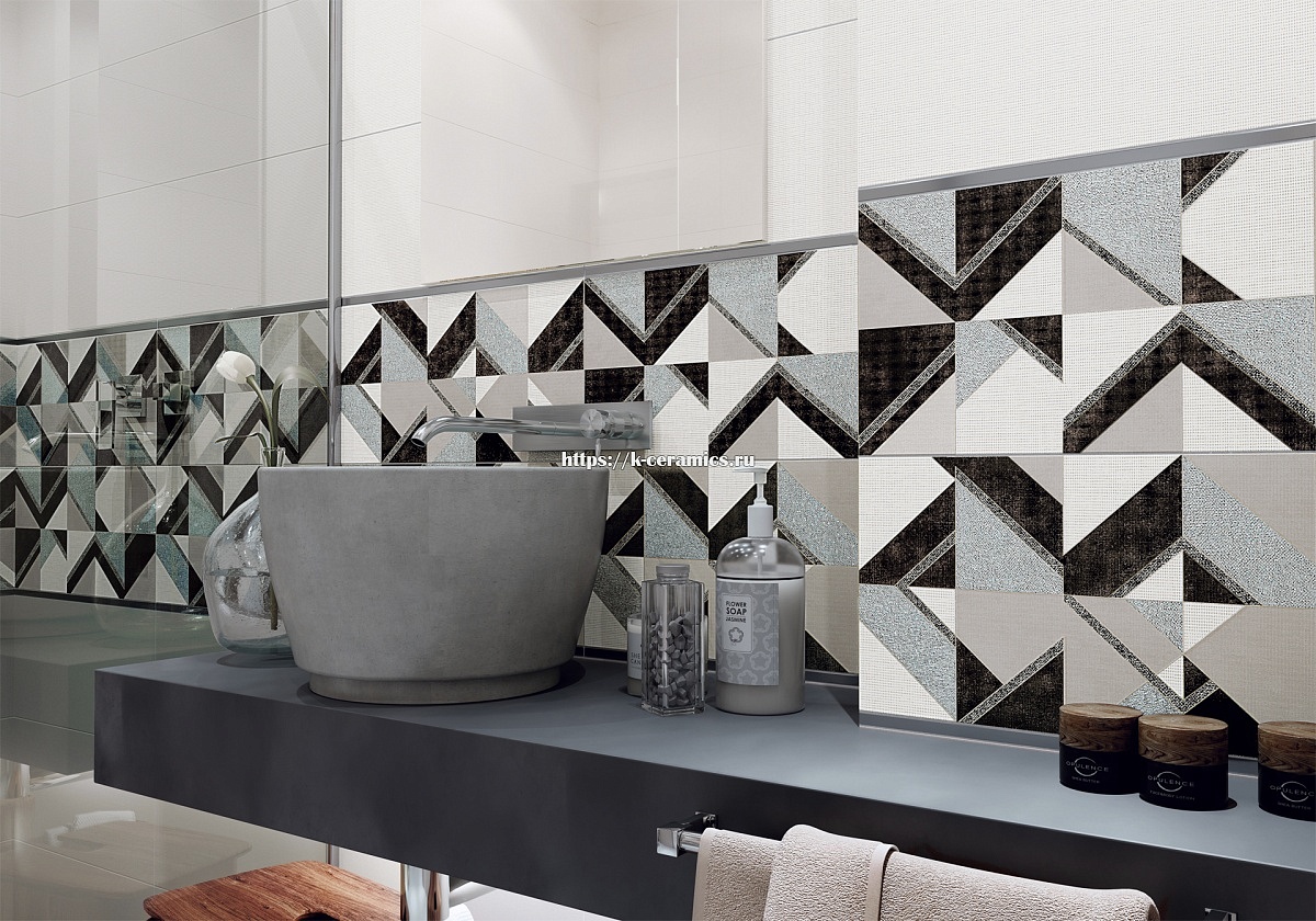 Коллекция Megapolis представляет собой сочетание различных размеров текстильных орнаментов и оригинальных цветовых решений в теплой и холодной гамме. Блестящая сахарная поверхность плитки дополняется панно с динамичным рисунком линий и геометрических фигур с сверкающими платиновыми элементами. Эта дерзкая и смелая коллекция идеально подходит для стильных современных интерьеров.