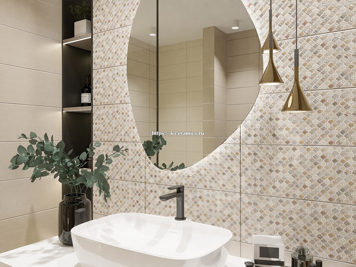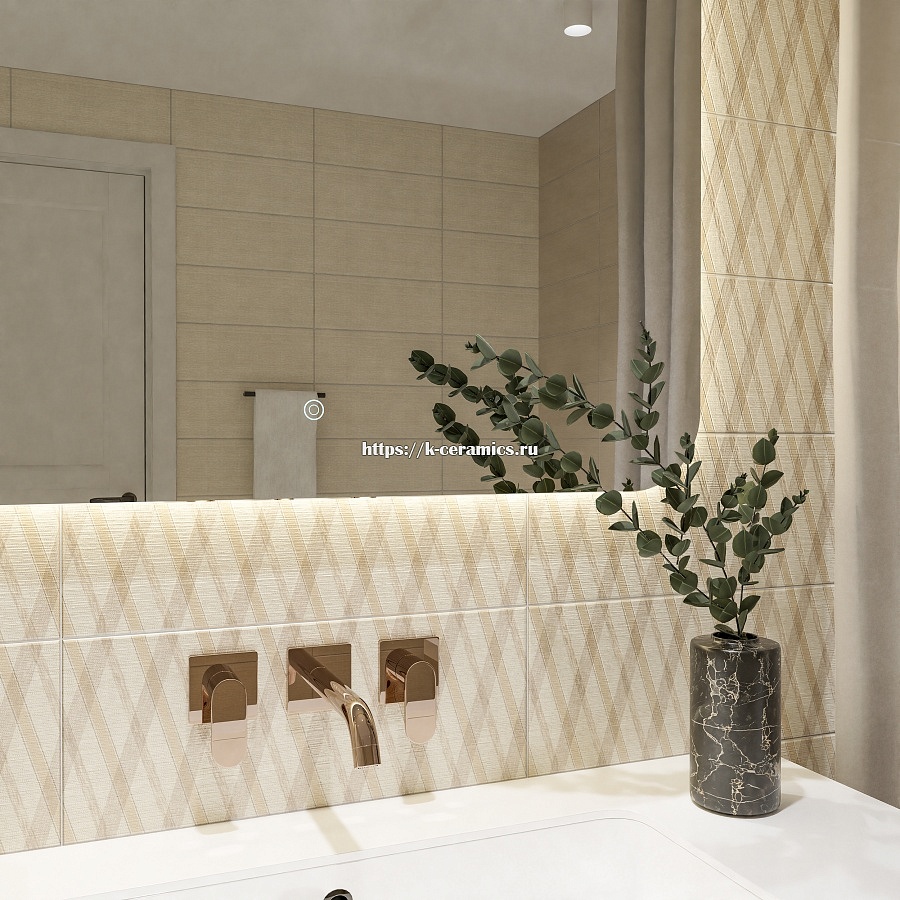 Коллекция Veneziano станет прекрасным украшением для любой ванной комнаты и выполнена в спокойных кремовых и бежевых оттенках с лаконичным орнаментом. Вся поверхность плитки искрится и переливается, придавая особую элегантность и ощущение роскоши. Текстура плитки напоминает плетение ткани или шелка, что отражает одно из названий коллекции - Seta (шелк).