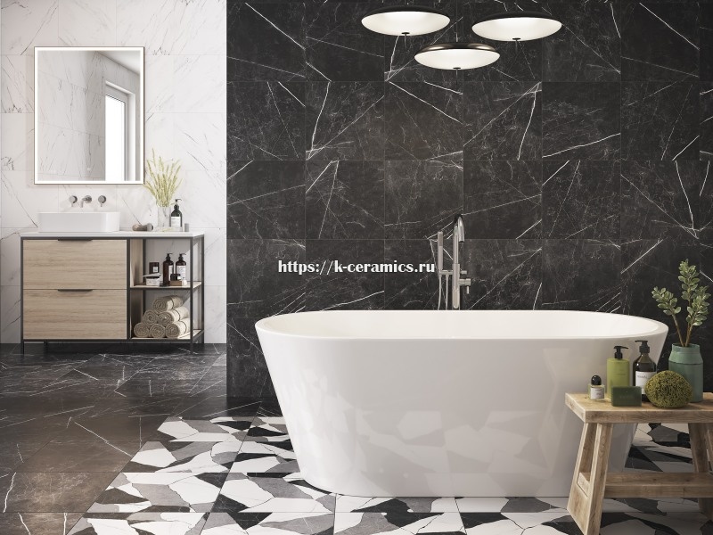 Ослепительный белый мрамор из коллекции Oriental привнесет в интерьер нотку торжественности и неповторимого шарма. Фактурная плитка создает игру света и нежно структурирует поверхность стен. Декоративные элементы включают в себя новинку — настенную мозаику — и напольную вставку с классическим орнаментом. Глазурованный керамогранит из коллекции ORIENTAL выпускается в формате 42х42 с рисунком, имитирующим фактуру белого мрамора. Такой керамогранит придаст интерьеру изысканный вид, сделает помещение светлее и просторнее. Керамогранит с мраморной текстурой выглядит великолепно сам по себе и прекрасно сочетается с разнообразными элементами интерьера. Основные преимущества керамогранита из коллекции ORIENTAL — это низкое водопоглощение и морозоустойчивость, а также широкий спектр применения: его можно использовать как на полу, так и на стенах. В дополнение к белой «мраморной» коллекции керамогранита ORIENTAL был выпущен серый и черный керамогранит в формате 42х42 с яркими декоративными элементами. Прочный облицовочный материал имитирует фактуры мрамора и серого камня. Белые прожилки и уникальный рисунок делают изображение реалистичным. Декоративные фрагменты представляют собой элементы, имитирующие мрамор и серый камень.