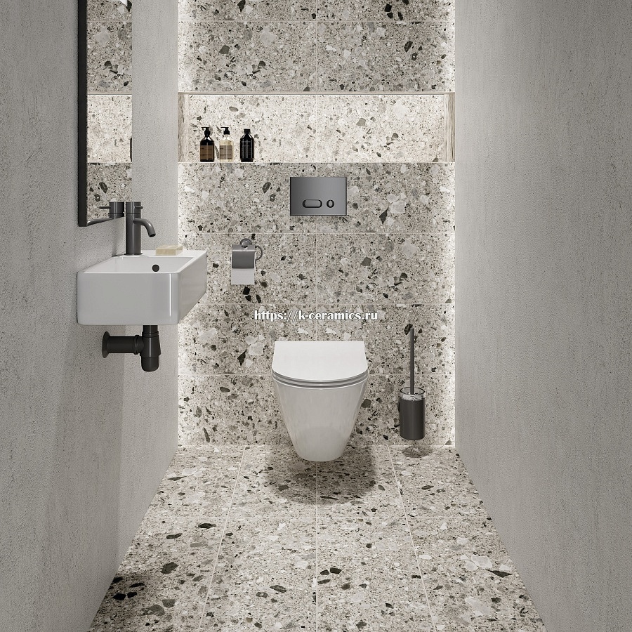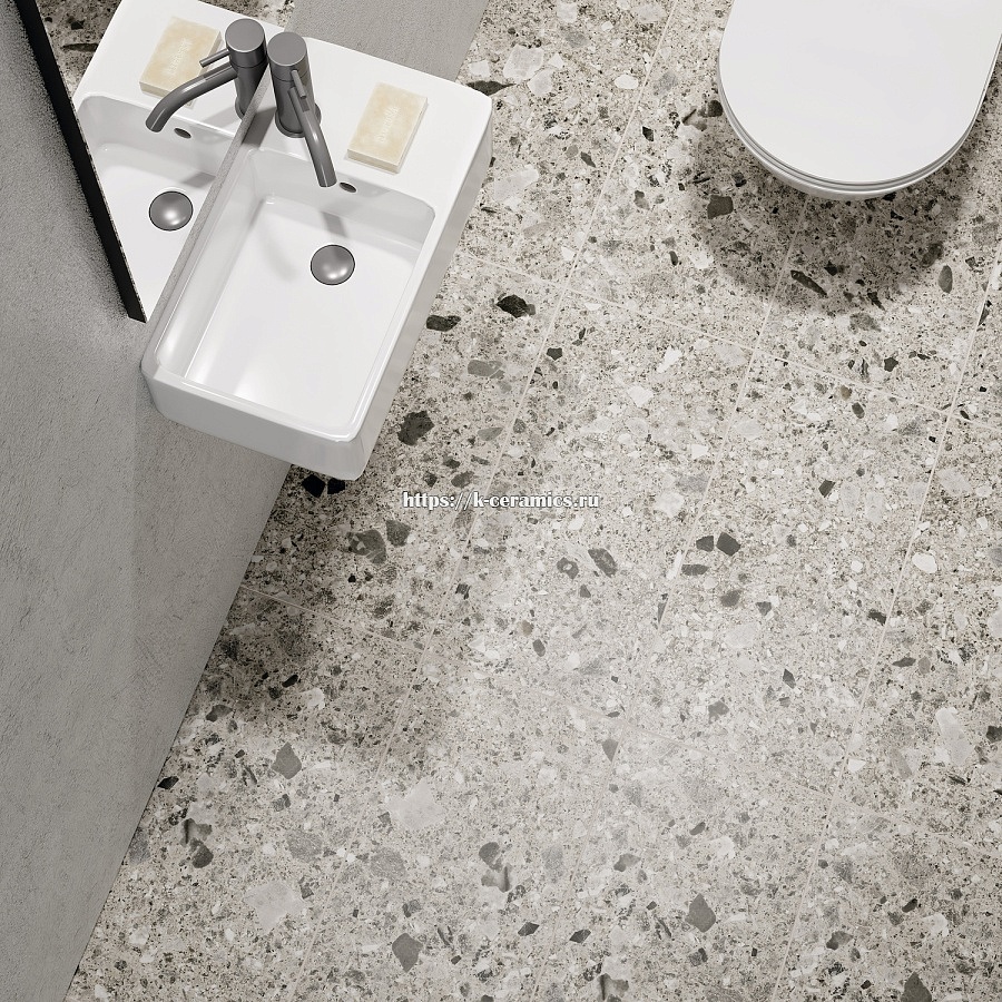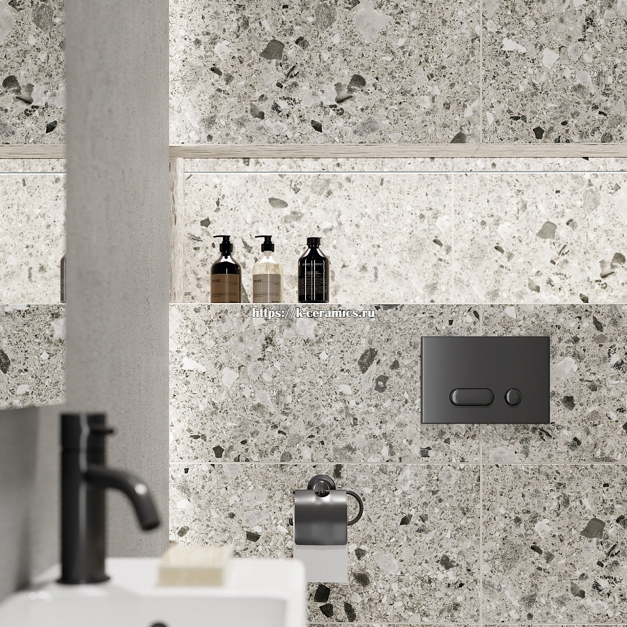 Вселенная венецианского терраццо воплотилась в коллекции Space. Матовая поверхность плитки с изящными включениями блестящих элементов на спокойном сером фоне станет стильным дополнением как для ванной комнаты, так и для гостиной. Плитки из этой коллекции могут использоваться и как декор, и как самостоятельный элемент. Высокая прочность керамогранита позволяет использовать его для облицовки стен и укладки на пол, не опасаясь за внешний вид материала в течение всего срока службы.